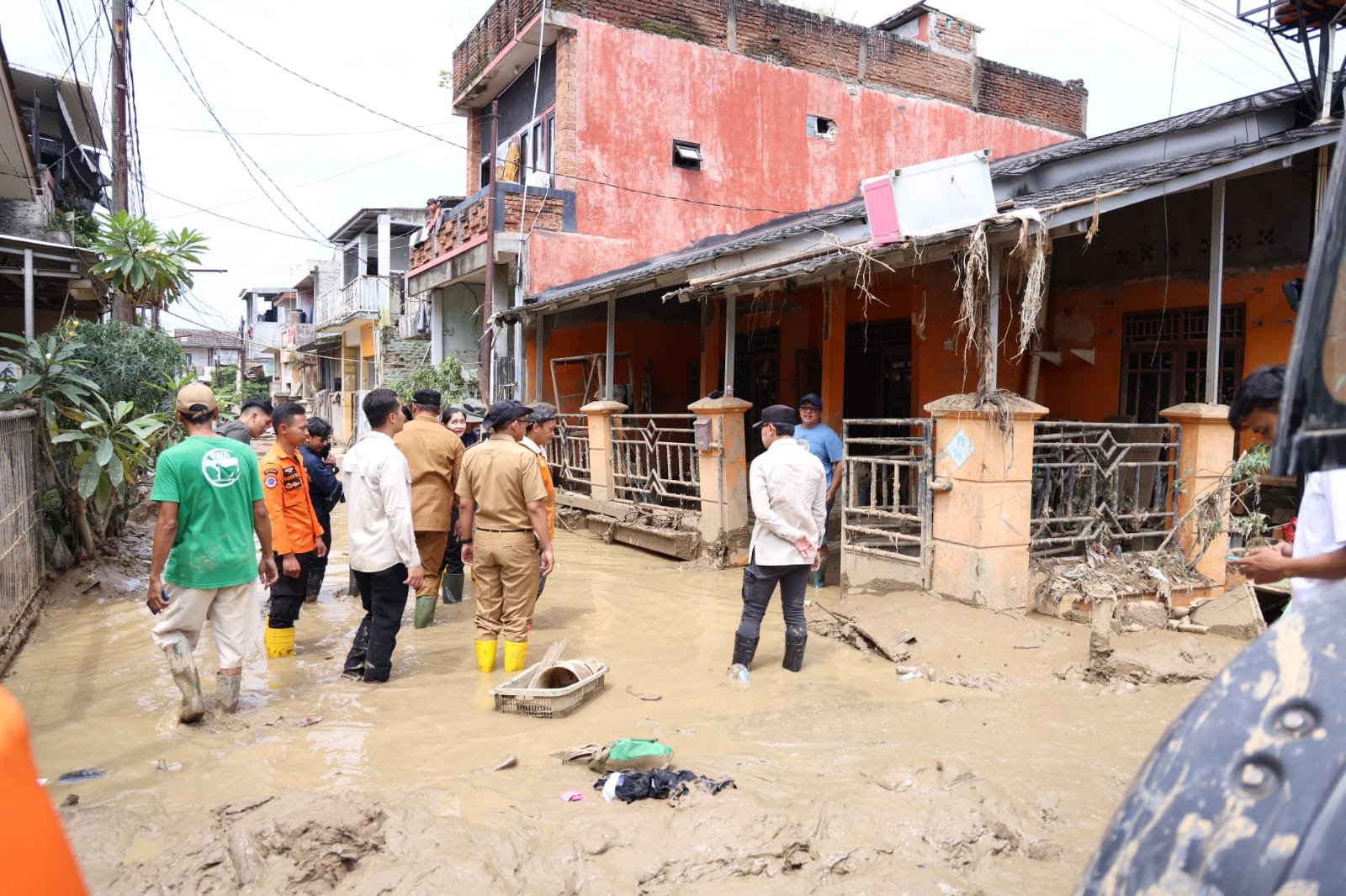 Dalam kesempatan tersebut, Rudy Susmanto didampingi Ketua DPRD Kabupaten Bogor, Sekretaris Daerah, serta jajaran Pemerintah Kabupaten (Pemkab) Bogor. Ia meninjau dapur umum yang beroperasi di aula kantor desa, memastikan distribusi makanan bagi warga berjalan tanpa hambatan.